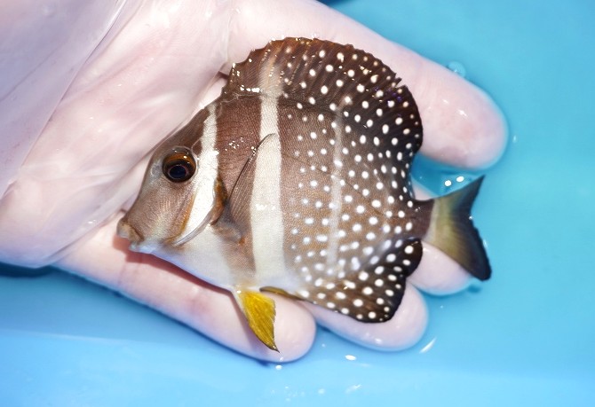 【海水魚・ハギ】人工飼料OK♪ゴマニザ(ホワイトスポッテッドサージョン)(個体販売)(±9cm)No.2(生体)(海水魚)