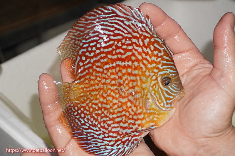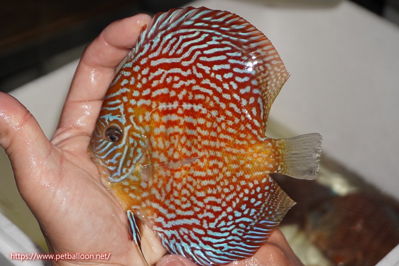 全身に入るパターンとブルー、クリムゾンレッドの名の通り鮮やかな色彩は独特なオーラを持ち、フォルム良し、若く発育の良い申し分ない個体となります。