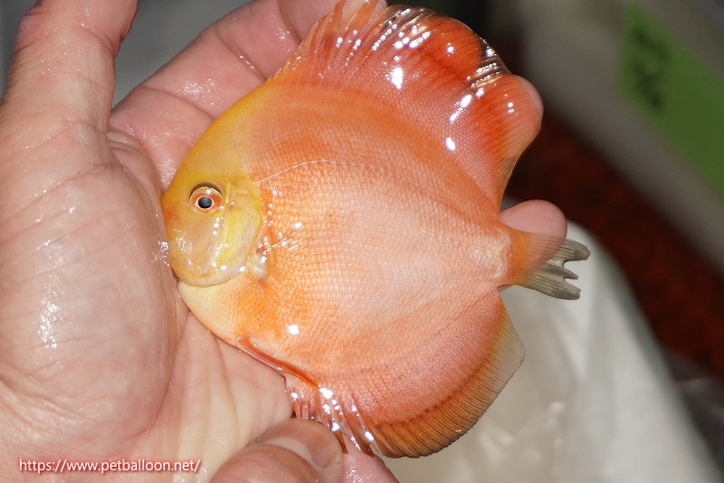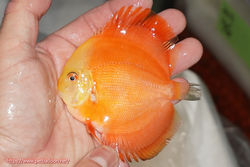 真っ赤なボディと上品なホワイトフェイスを持つピジョン系ディスカス。きめ細やかな鱗はより上品な発色を持ちます。