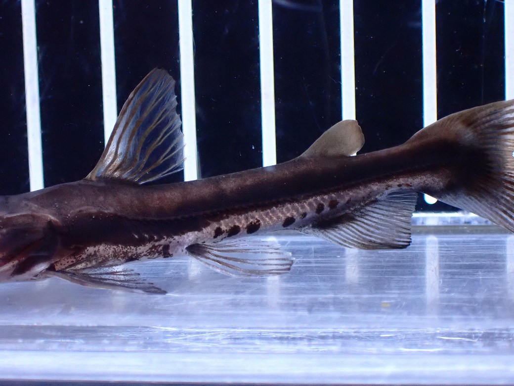 パラグアイ便で入荷しております、本種ですがタイガーシャベルノーズキャットとシャベルノーズキャットの雰囲気を持っているように感じますので、おそらく自然交配種ではないかと思います。
