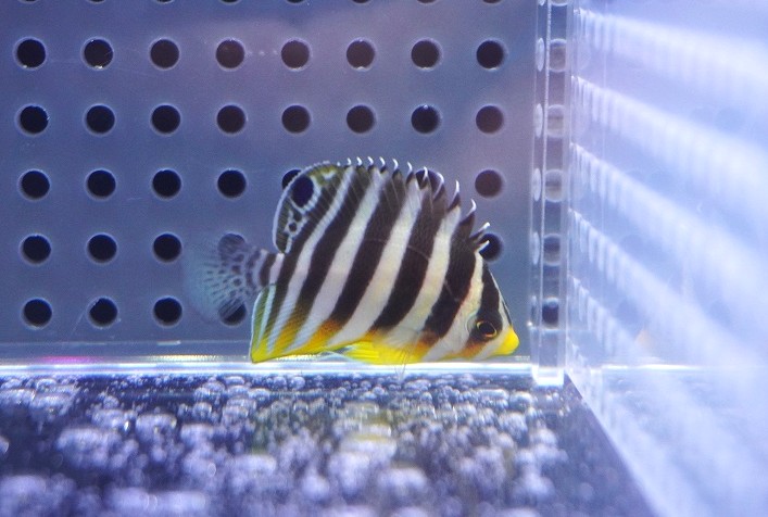 【10%OFF対象商品30周年セール】 【海水魚・ヤッコ】【通販】人工飼料OK♪シマヤッコ(XSサイズ)(個体販売)(±3.5cm)No.1(生体)(海水魚)