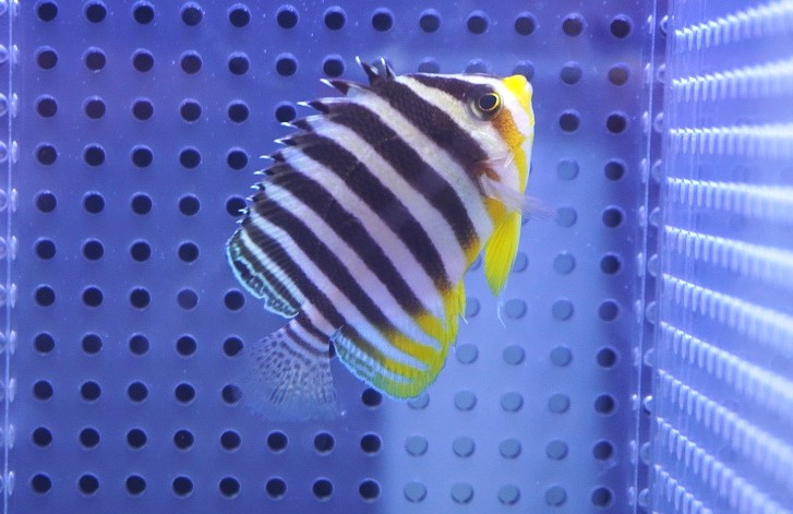 【10%OFF対象商品30周年セール】 【海水魚・ヤッコ】【通販】状態良好♪シマヤッコ(SMサイズ)(個体販売)(±5.5cm)No.7(生体)(海水魚)