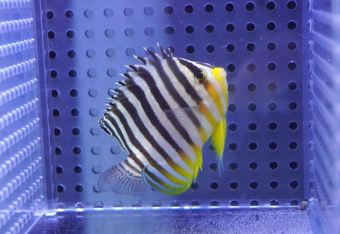 【10%OFF対象商品30周年セール】 【海水魚・ヤッコ】【通販】状態良好♪シマヤッコ(Mサイズ)(個体販売)(±6cm)No.8(生体)(海水魚)