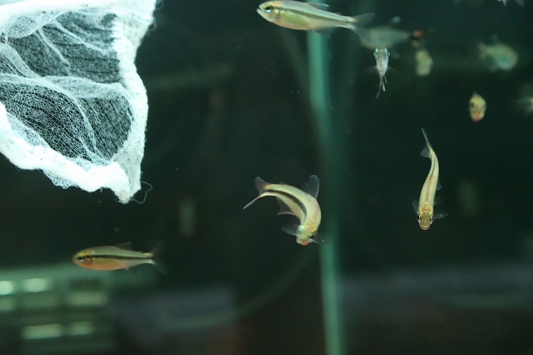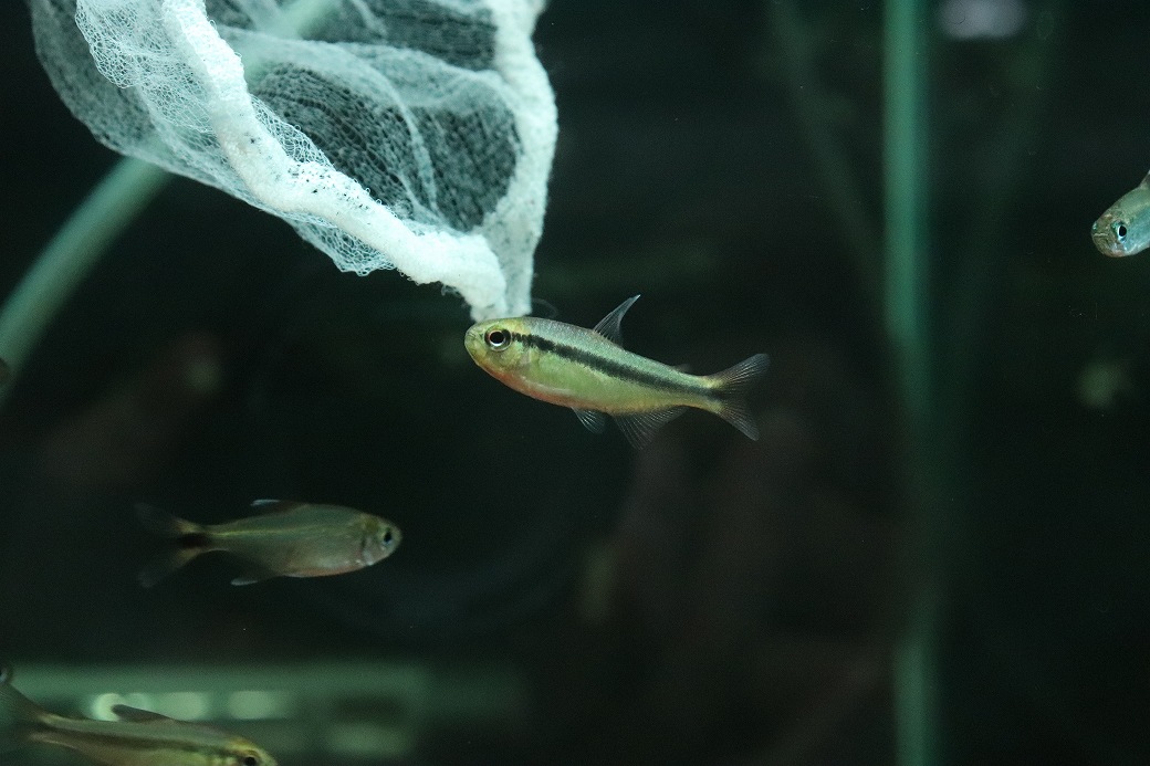 ラピス系のテトラで現在はヒレやボディに多色な色が見られております。問屋からいただいておりますお写真では、変わったきつい赤みをヒレに持ち、非常に強烈な色合いをしております。今後の変化が楽しみです。