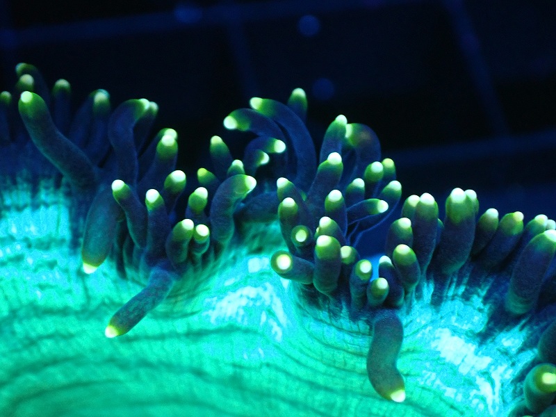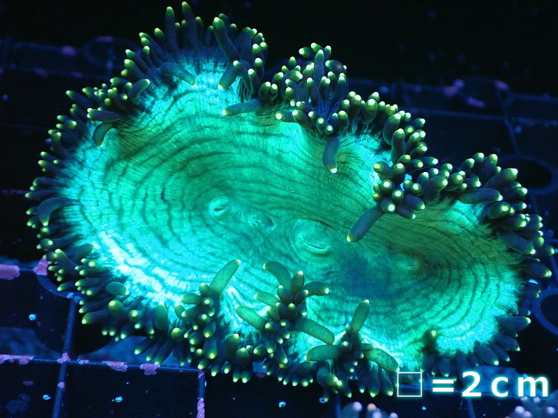 【サンゴまとめ買い割り引き対象商品30周年セール】 【サンゴ】【通販】トランペットコーラル(メタリックグリーン/イエローチップ)SMサイズ(個体販売)No.4(生体)(サンゴ)