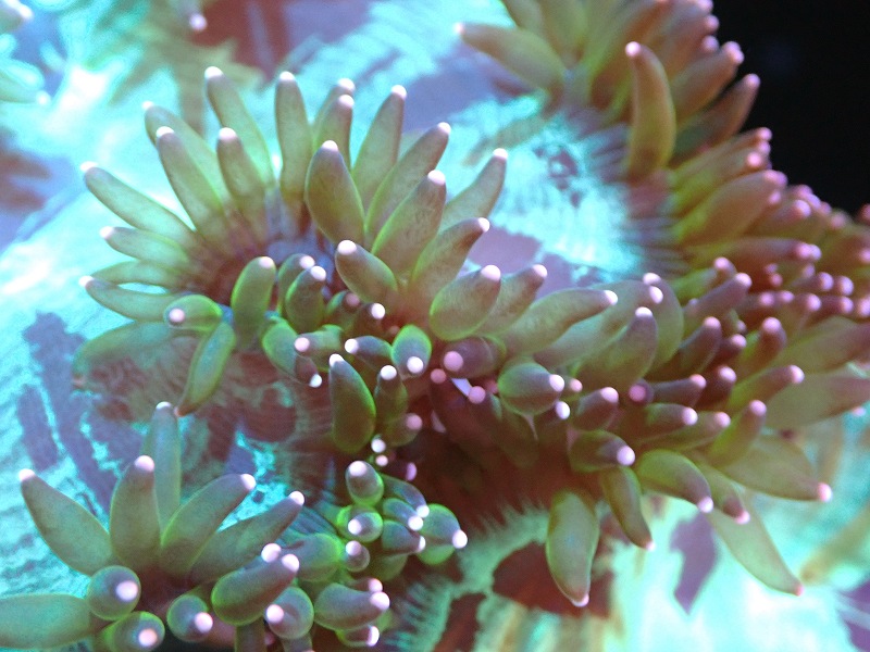 【サンゴまとめ買い割り引き対象商品30周年セール】 【サンゴ】【通販】トランペットコーラル(メタリックグリーン/ピンクチップ)MLサイズ(個体販売)(±13-15cm)No.11(生体)(サンゴ)