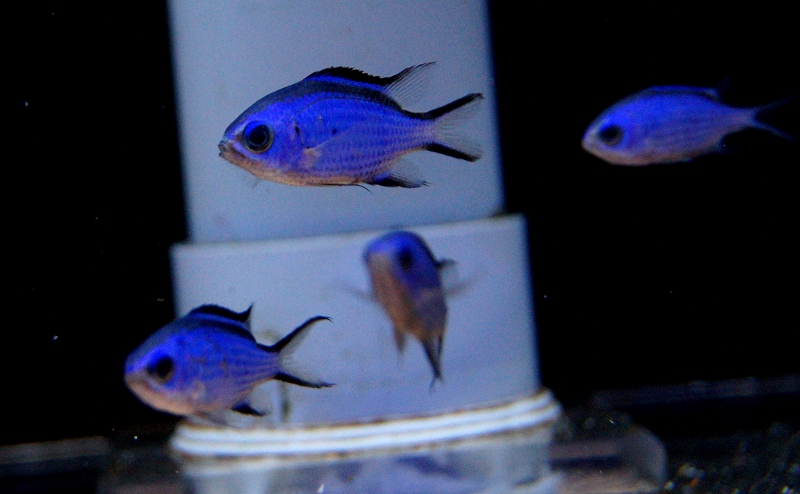 カリブ海の美しいスズメダイです。成長とともに青みが増し、美しくなります。■給餌について人工飼料(zt01-10617031・zt01-30921011)をよく食べます。