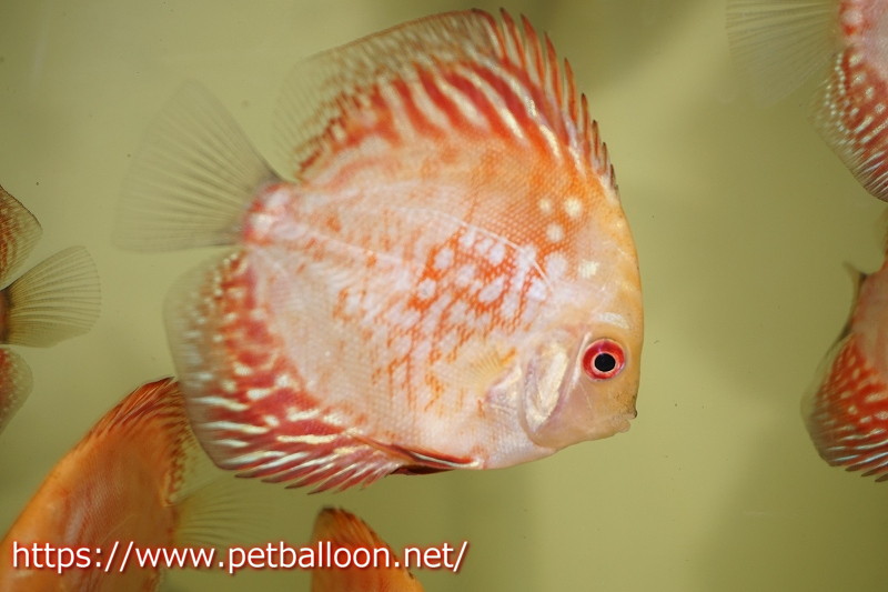 改良品種ディスカス大国のマレーシア・ペナン島屈指のブリーダーTAN CHEE LOK氏の作出したディスカスとなります。氏のファームはその規模、質、生産力どれも世界屈指のレベルとだけあり素晴らしいディスカスを多数保有しております。非常に派手なレッドラインがボディーを覆う非常に美しいピジョン系改良品種となります