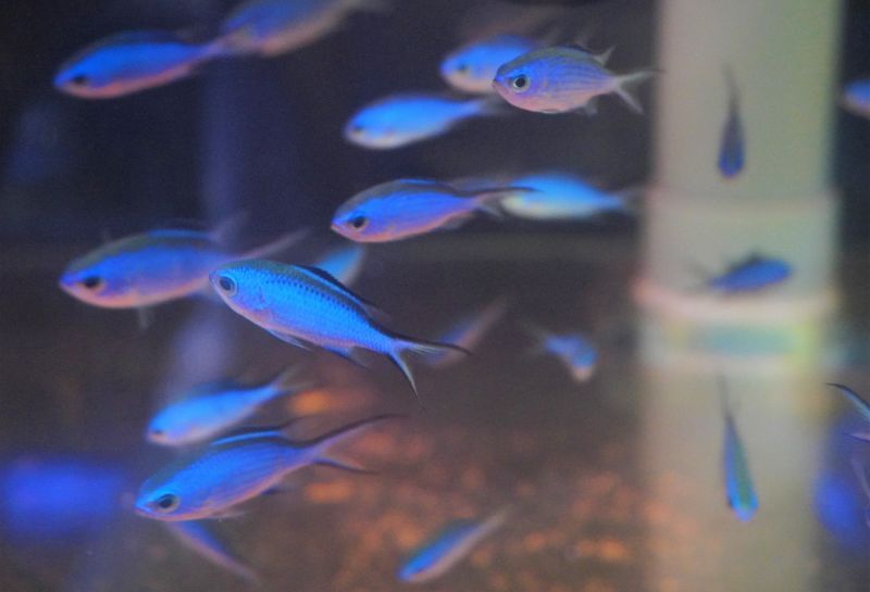 【海水魚・スズメダイ】【通販】ブルーリーフクロミス (Mサイズ)(3匹セット)(±4-5.5cm)(サンプル画像)(生体)(海水魚)