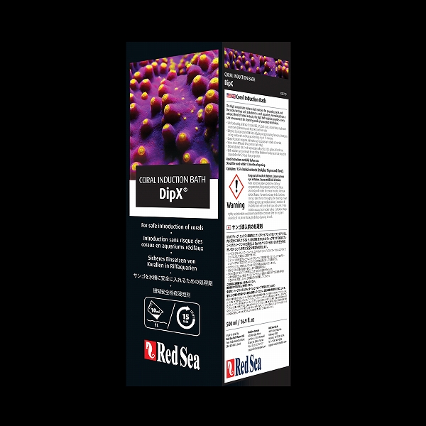 空の容器にDipXを注ぎます予め容器が清潔で乾燥している事をご確認ください10 mlのDipXを1Lの飼育水に混ぜ溶液を準備します(水槽の水で1:100に希釈)新しいサンゴまたはライブロックを15分以内で溶液に浸します一度に処理できなかった場合サンゴ/ライブロックを最大4回に分けて溶液を再利用できますが用意してから2時間以内には廃棄してください