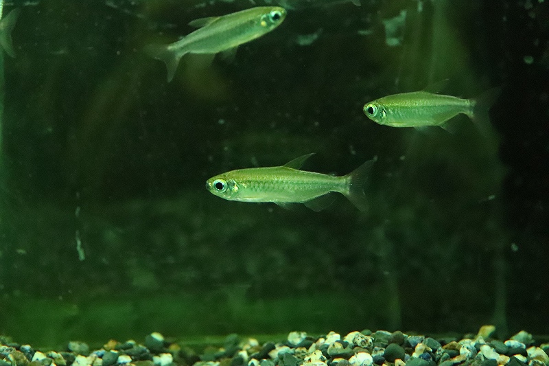 体表に青のパウダーがのっていたり、目はゴールデンコンゴテトラの特徴がありますね。